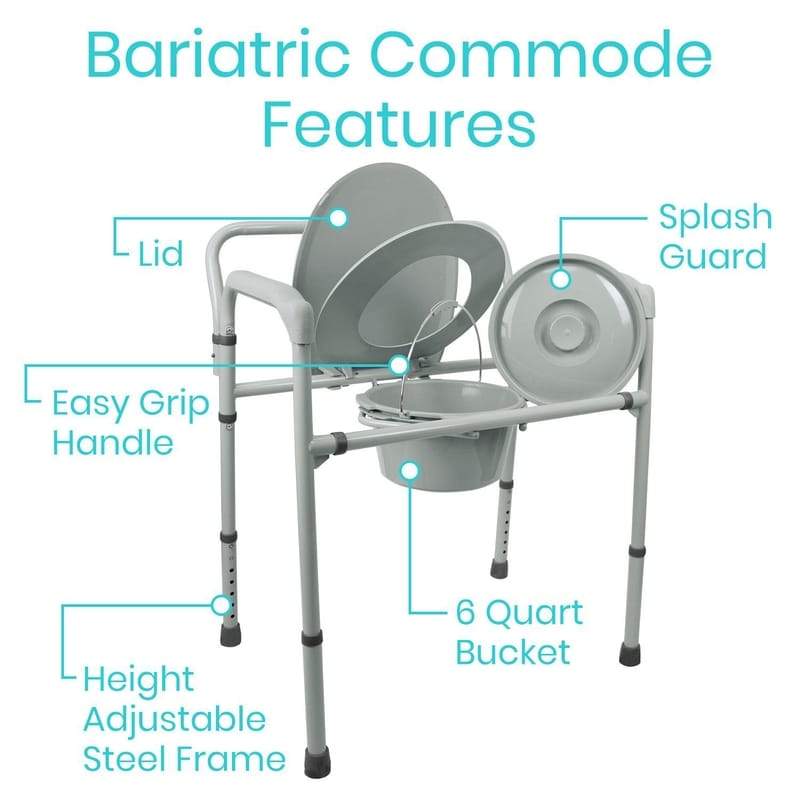 For use at the bedside, as a toilet safety rail or as an elevated seat riser, the bariatric commode is a convenient option for seniors and those with limited mobility at home or on the go