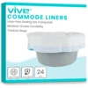 Six-quart commode pail fits standard commode liners and also includes a lid and splash guard