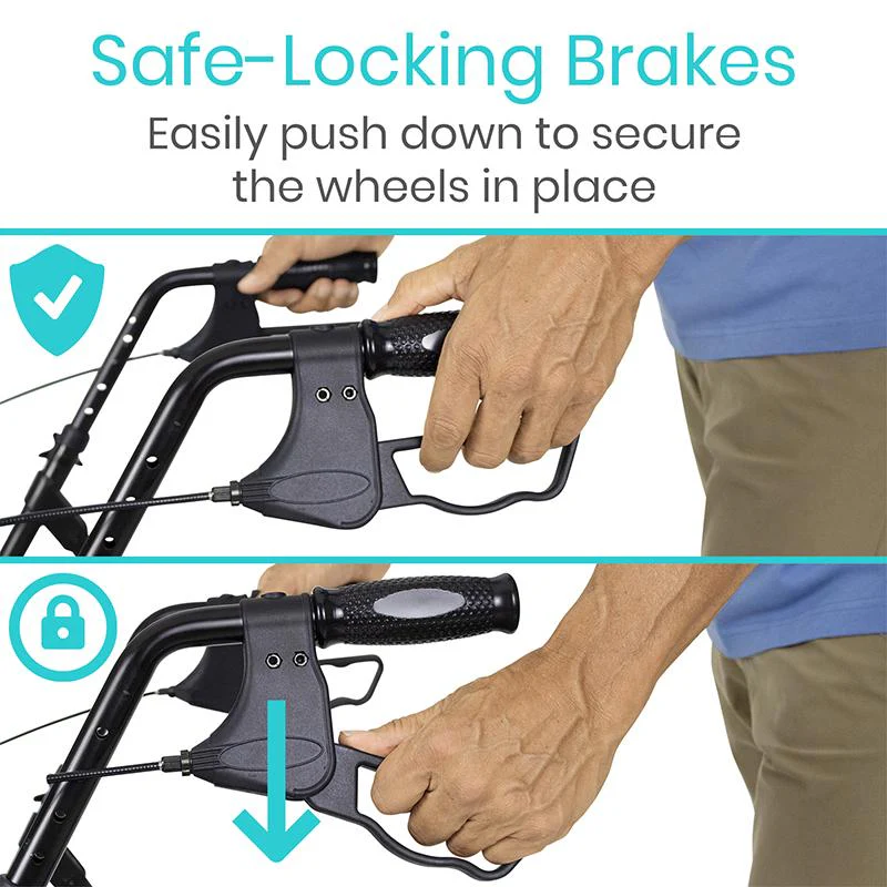 Confidently navigate most terrain and comfortable rest when needed with the stabilizing support of the Vive bariatric rollator