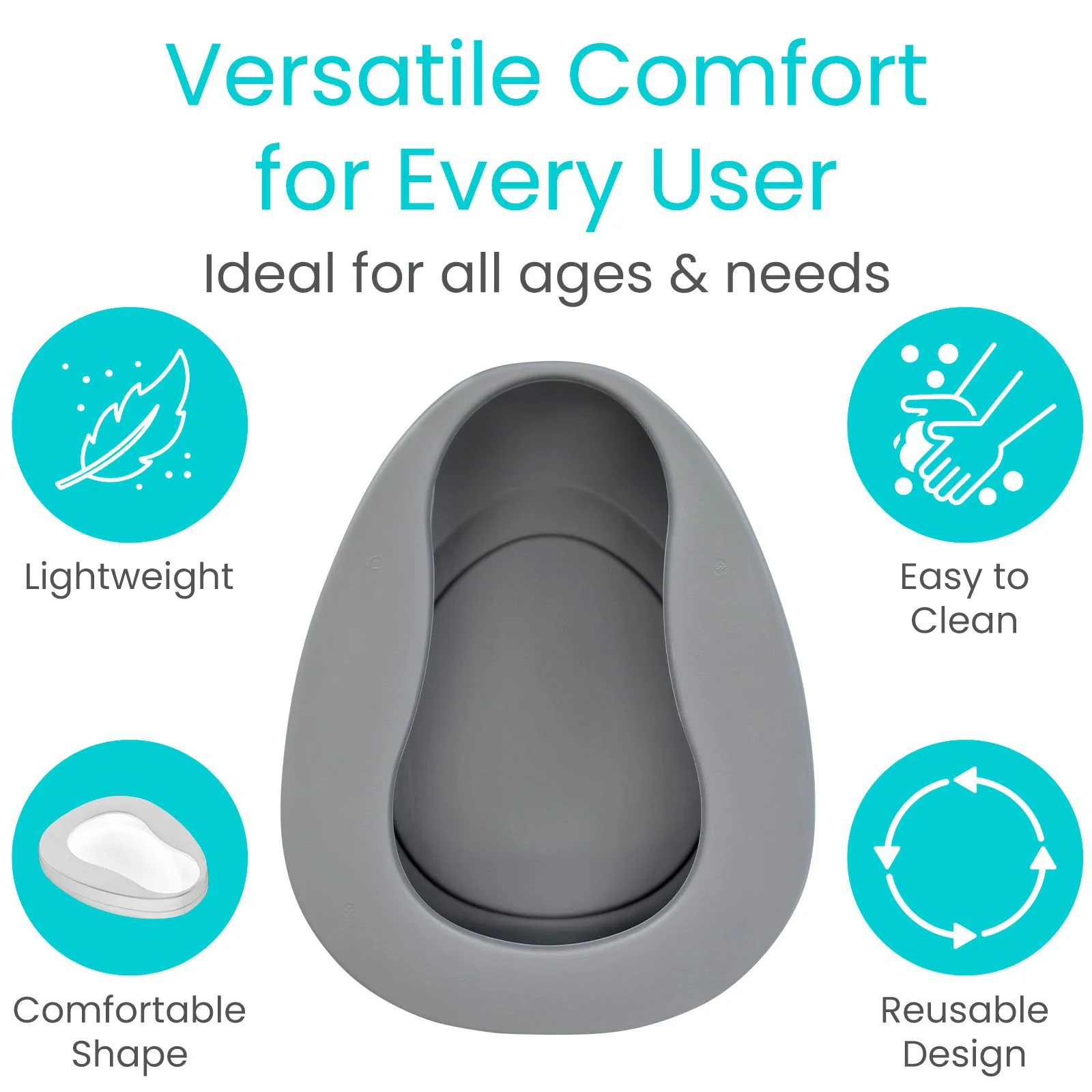 Designed with user confidence in mind, the Vive Bedpan features a secure, elevated rim that guards against spills and leaks, ensuring clean and hassle-free usage every time