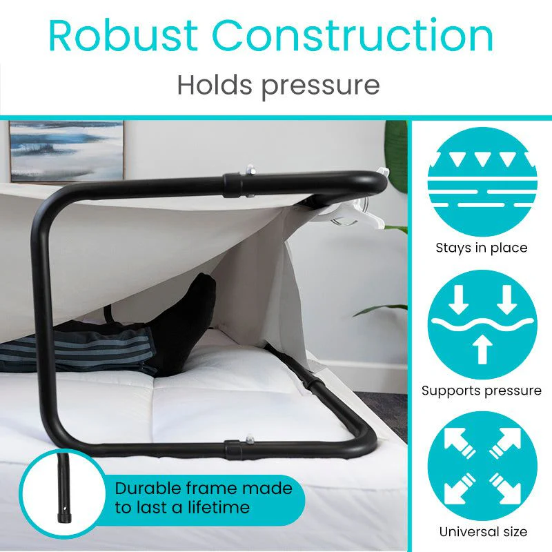 The Vive blanket lifter features strong and durable steel construction that is capable of securely supporting heavy blankets, sheets, or comforters. Stay warm and comfortable while preventing friction and direct contact with healing body parts