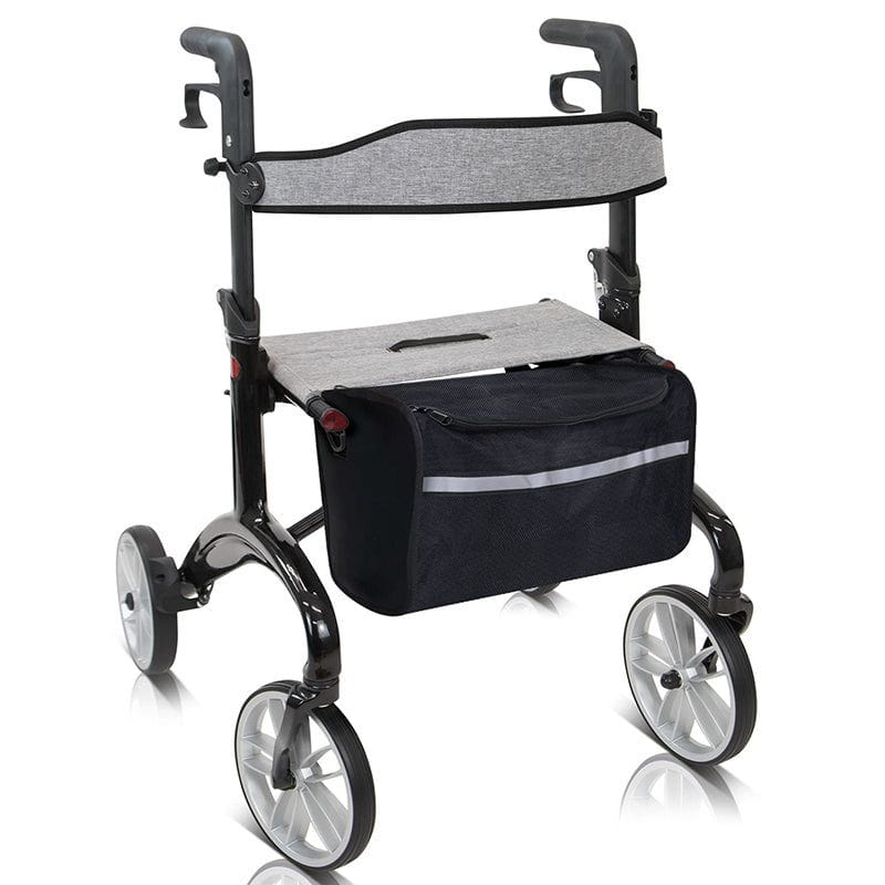 This rollator features a compact, foldable design that simplifies storage and transportation. Accompanied by a detachable shopping bag, it allows for your belongings to be easily accessible, whether you’re running errands or traveling. The spacious storage compartment is perfect for securely carrying personal items like glasses and medications, ensuring you have everything within reach