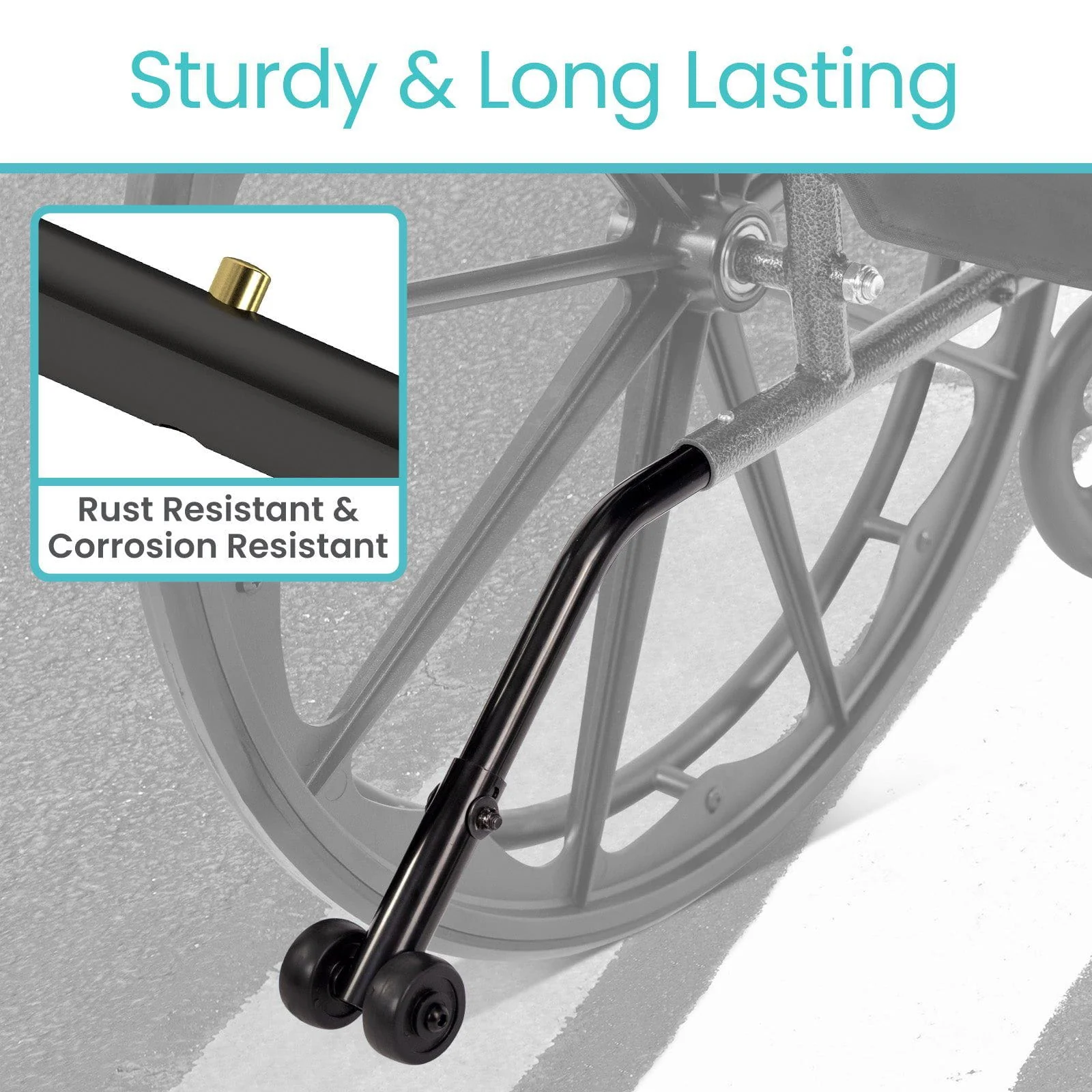 Designed to enhance stability, these curved anti-tippers reduce the risk of dangerous tipping and falls. Attach them to the base of your wheelchair for added control and peace of mind, whether you’re navigating uneven outdoor surfaces or going up and down ramps.