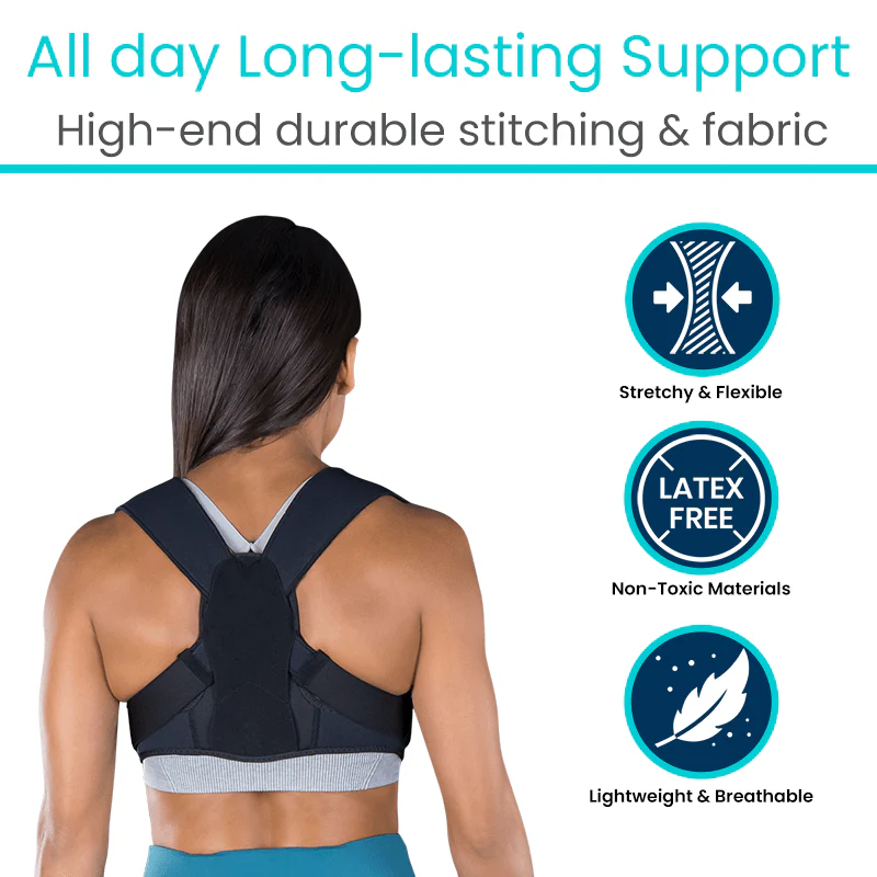 Effectively relieving pressure and stress on the spine, the posture corrector aids in reducing neck, shoulder and back pain