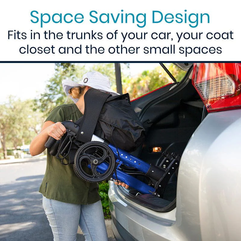Easily portable, the tall rollator folds down to fit in the trunk of most cars and for compact storage at home or on the go
