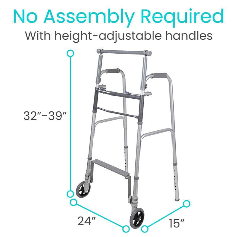 The Vive Stand Assist Walker is not only stable and supportive but also designed for easy storage and transport. Its foldable nature makes it convenient to store in tight spaces, perfect for home use or travel. The walker’s design ensures it can be effortlessly carried and stored, making it an ideal choice for those seeking a portable mobility aid.