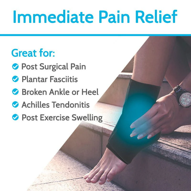 The Vive Ankle Ice Pack Wrap provides immediate pain relief, making it great for sprains, strains, post-surgery recovery, Achilles tendonitis, plantar fasciitis, and other foot and ankle conditions