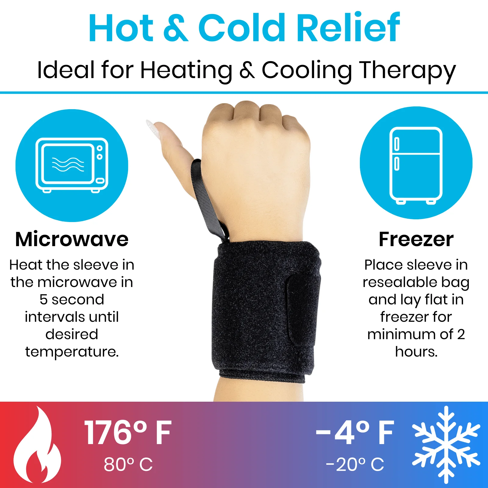 Whether you’re recovering from an injury or managing chronic wrist pain, these wrist wraps offer dual-temperature therapy to meet your specific needs. With secure velcro closures, they stay in place for hands-free relief, helping you reduce swelling and tension more effectively.