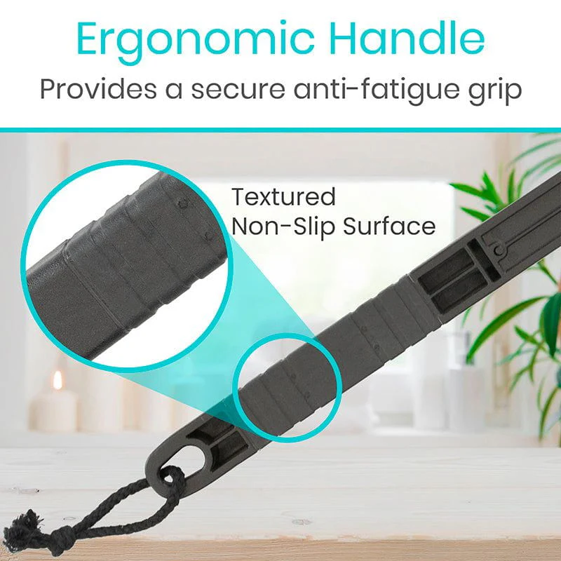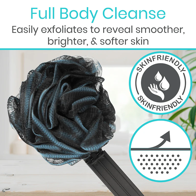 Maintain a sturdy grip and reach areas like the back, legs, feet, and neck without straining or risking injury during a bath or shower