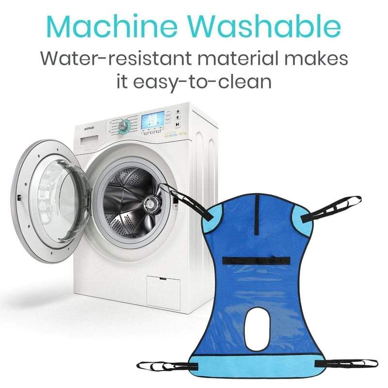 Easy to clean, the patient commode Lift Sling with Opening is machine washable