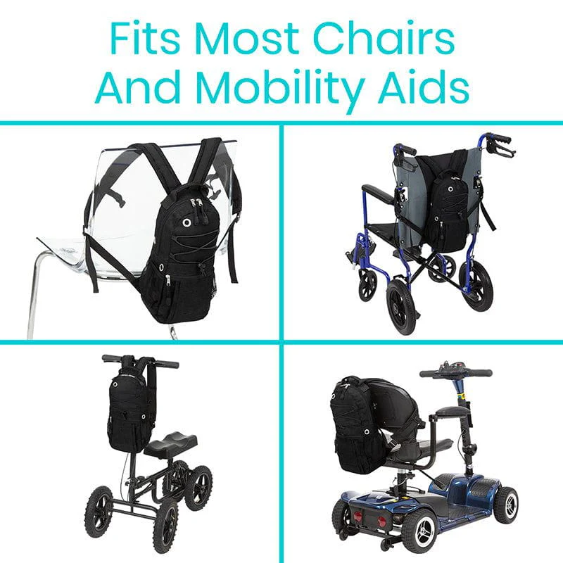 Carried as a backpack or fitted on a wheelchair, mobility scooter or rollator, the holder bag features a reinforced base for added durability