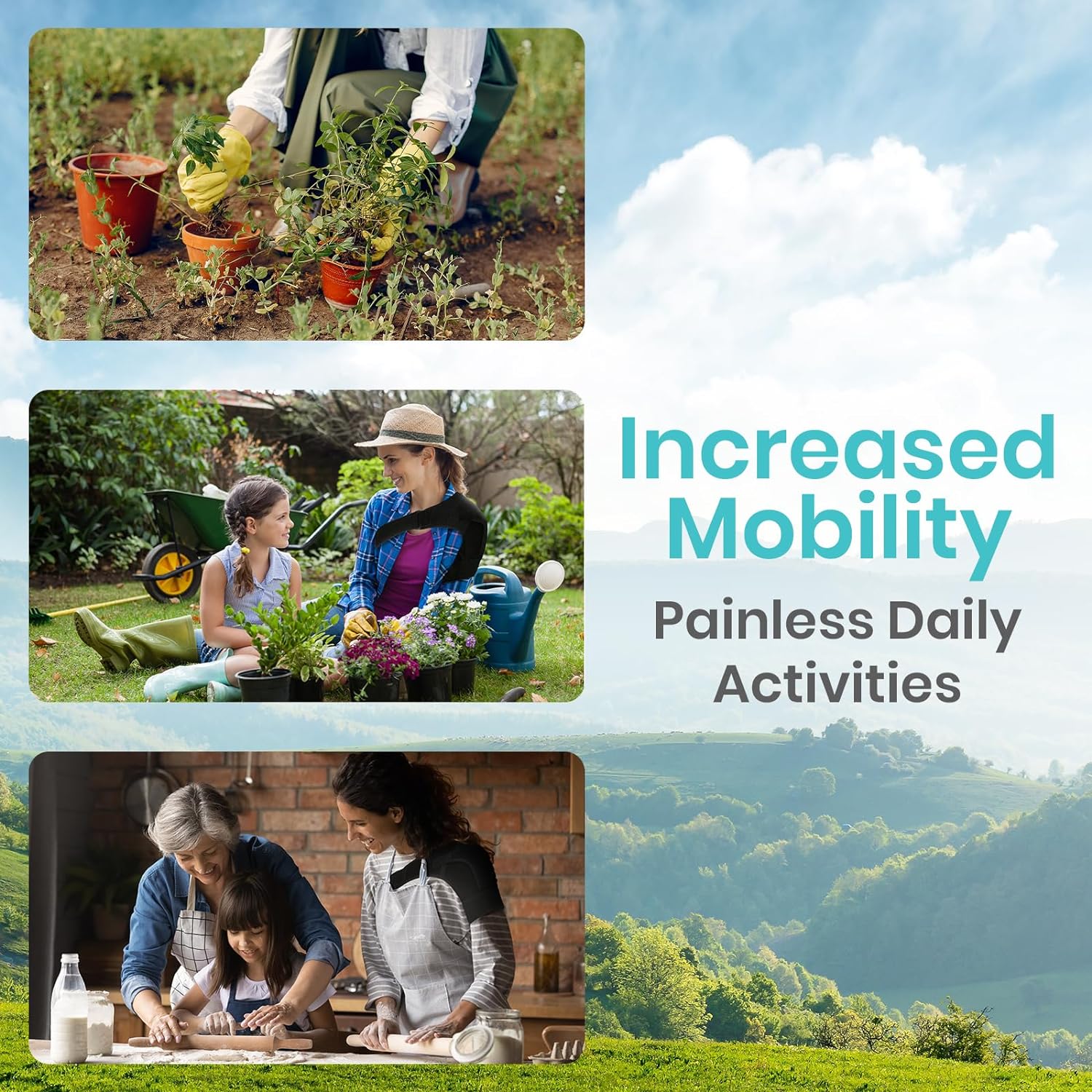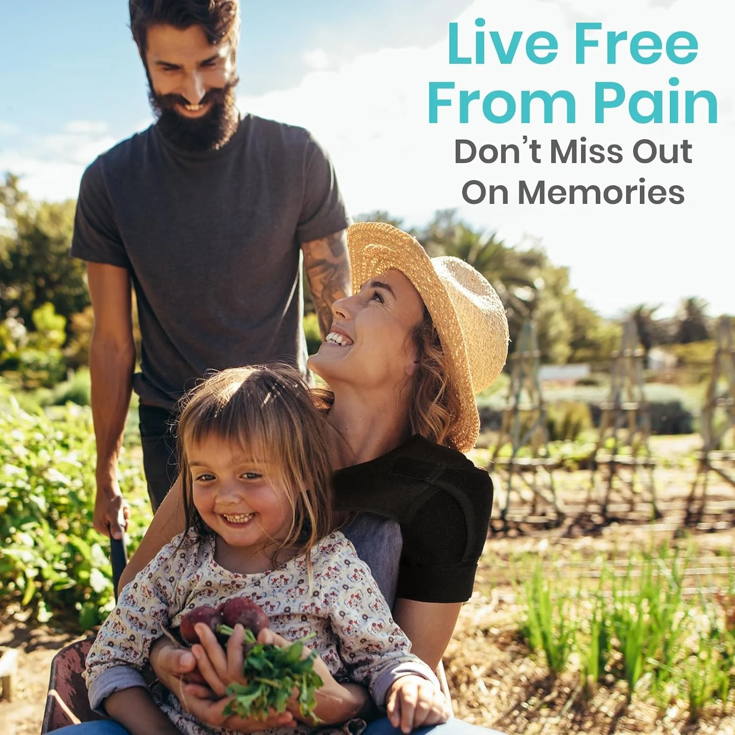 Providing soothing, customizable compression, the shoulder brace relieves pain and increases circulation to promote healing