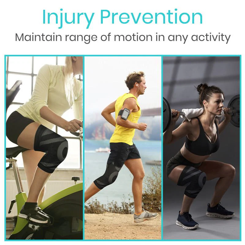 Relieve swelling and pain in your knees with the Vive stabilizing knee sleeves, for a secure and comfortable fit that provides all-day support