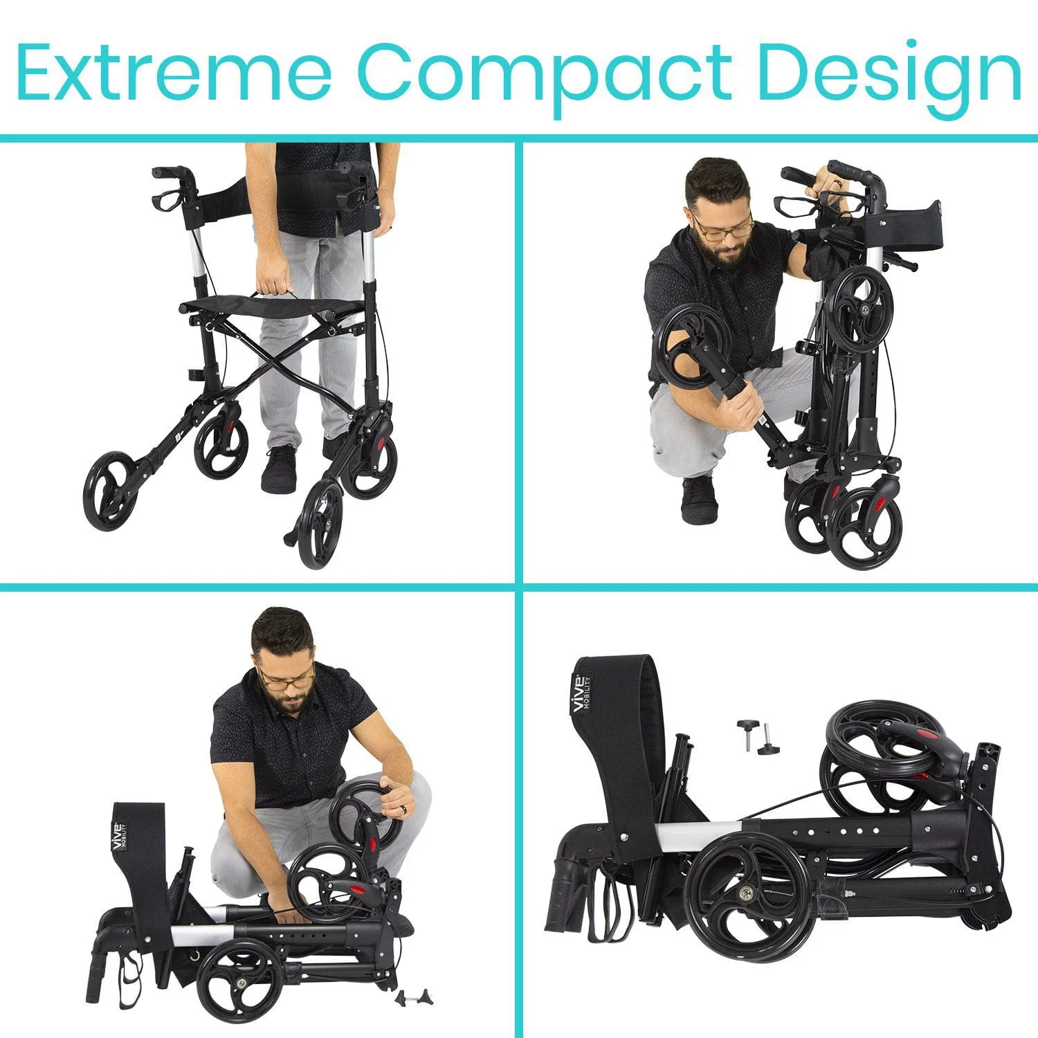 Conveniently folds down for compact storage and transportation, easily fitting in the trunk of a car