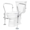 Adjustable safety rail fits all standard, elongated and irregular toilets