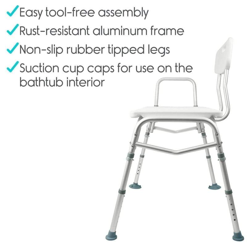 The reversible seat back and adjustable leg height will accommodate almost any tub