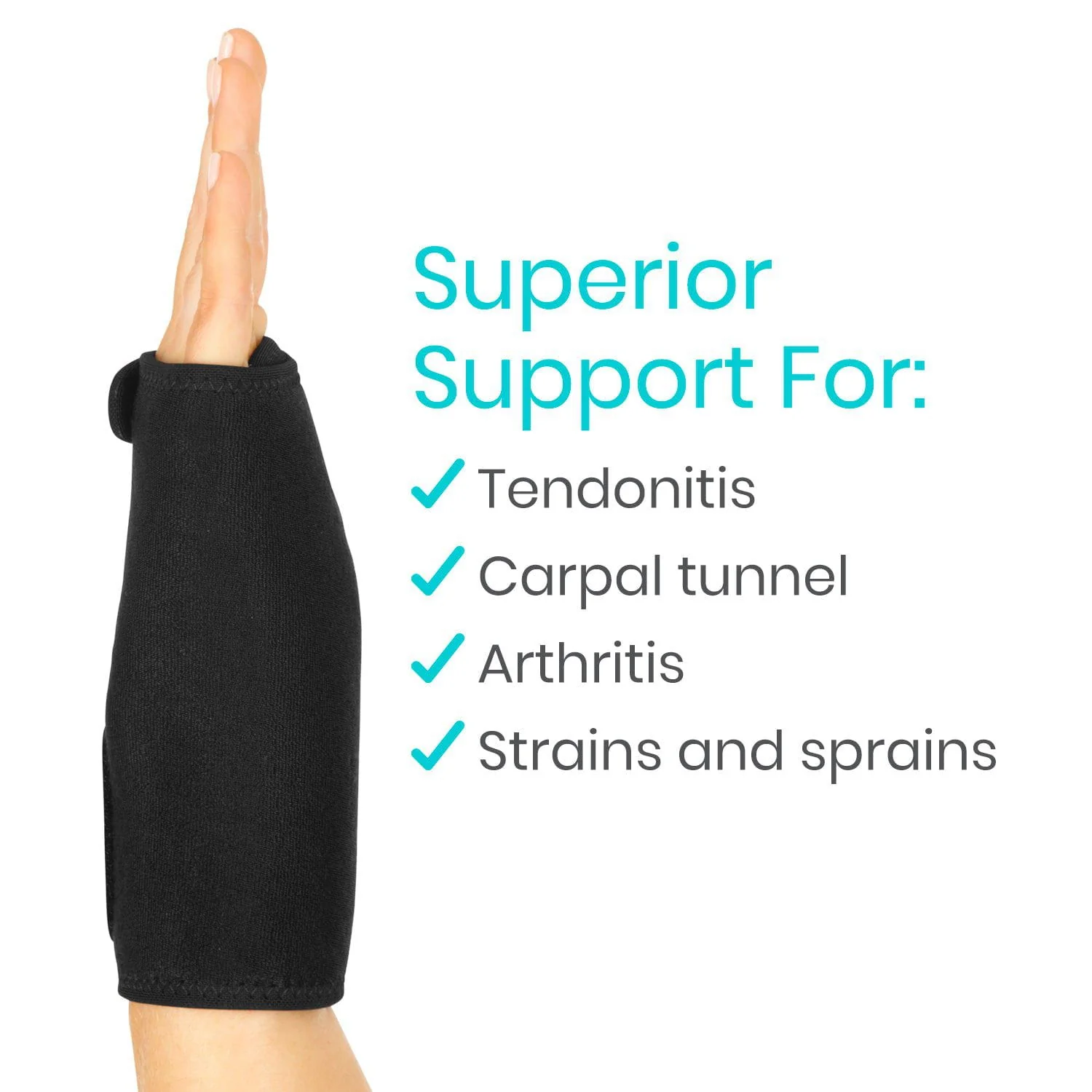 Secures wrist in a neutral position to relieve pain, inflammation and swelling and prevent re-injury
