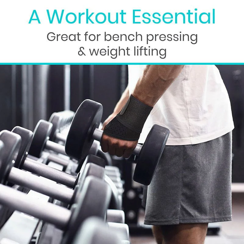 Supporting the wrists in a neutral position, the wrist wrap stabilizes the wrists to relieve pain, inflammation and swelling